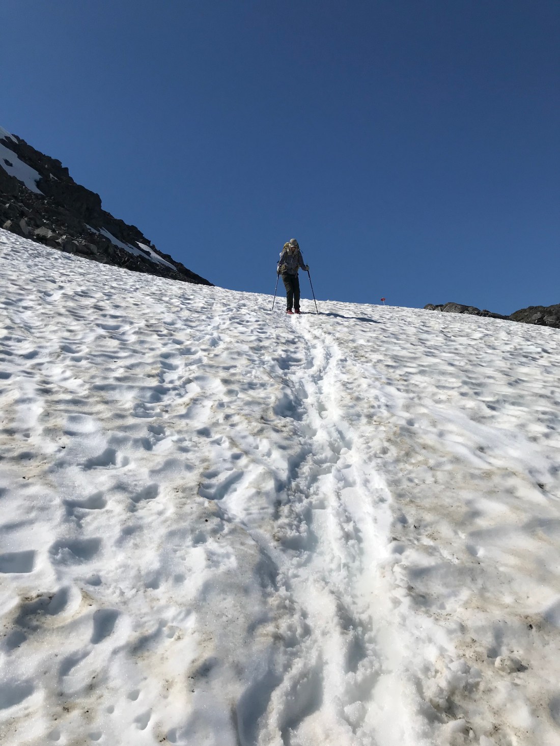 We camped alone at a real campsite with two picnic tables and a pit toilet.