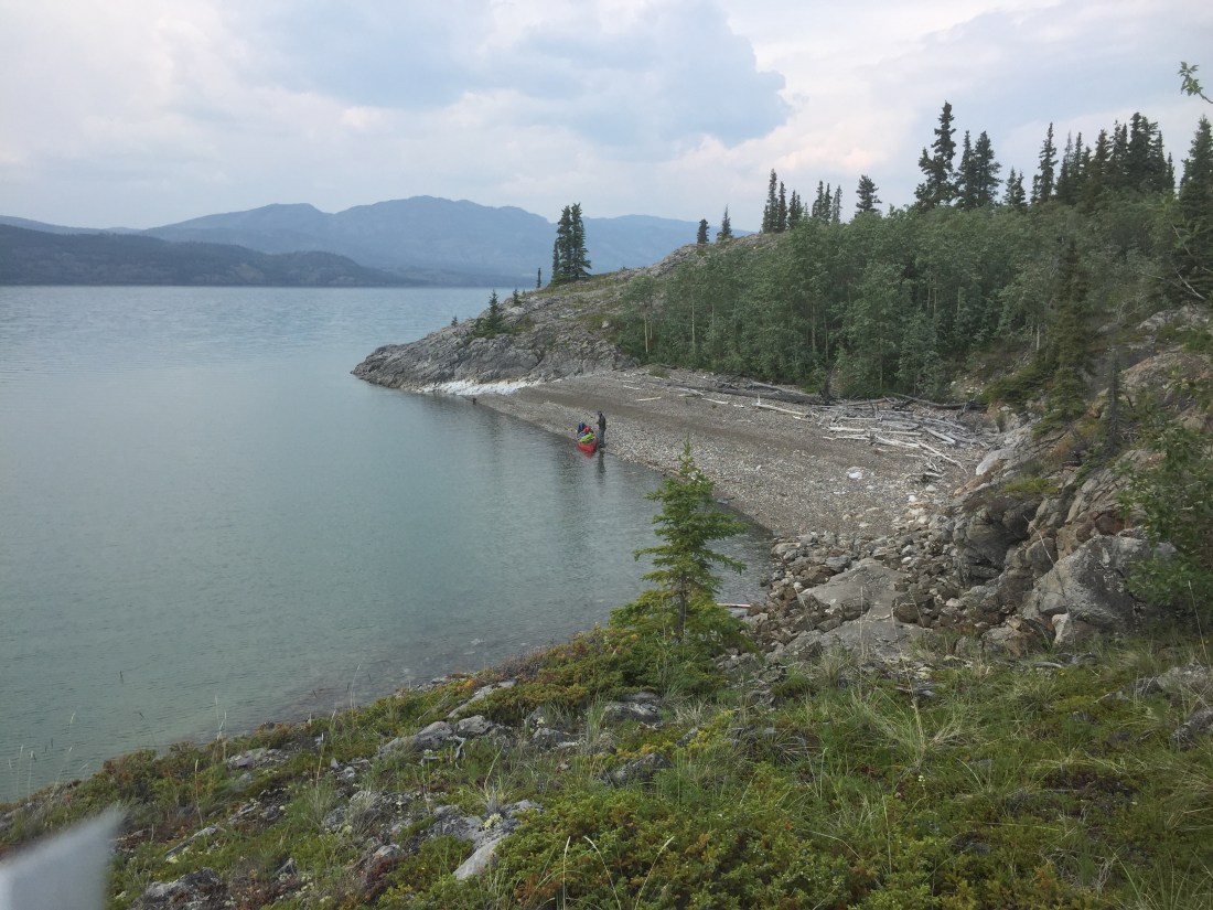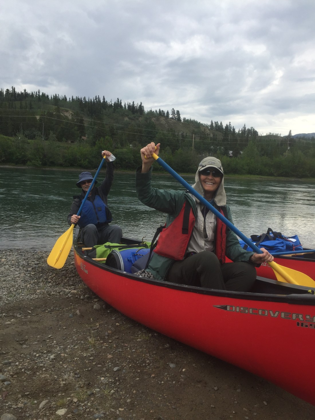 Before beginning this journey, I anticipated having sore arms, and I do. But along with that I have excruciating sciatica, as well as overall leg and finger pain. We stopped paddling today at 4:30. Both of us were totally exhausted. If we’re going to make the Husky Bus from Dawson to Whitehorse on one of the three days it runs, we’ll need to pick up our pace to 40 miles per day. Hope we make it.